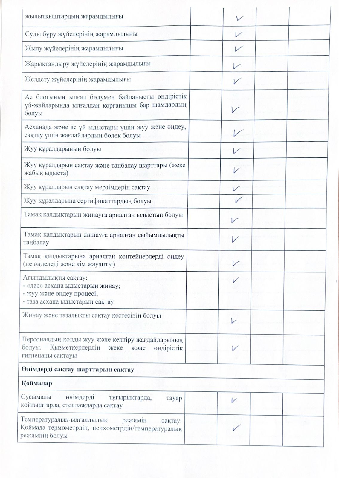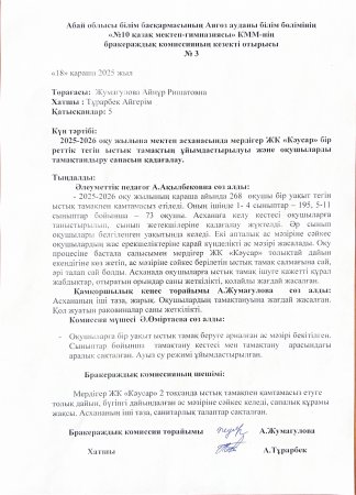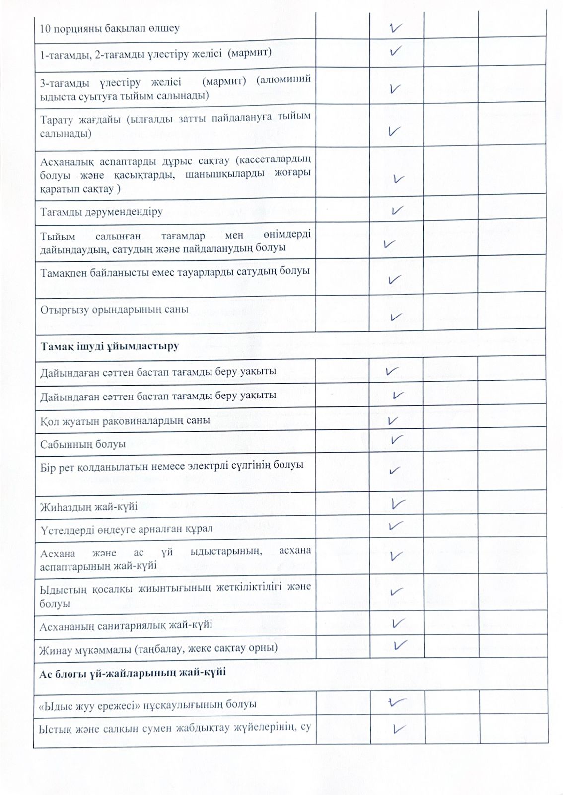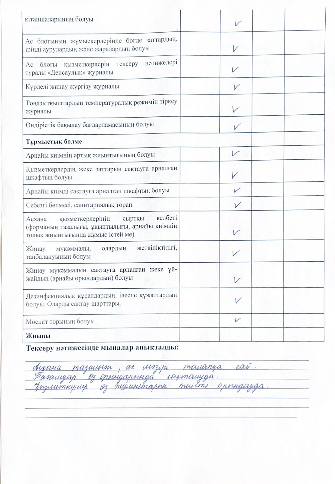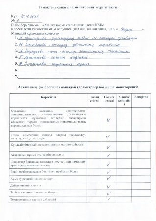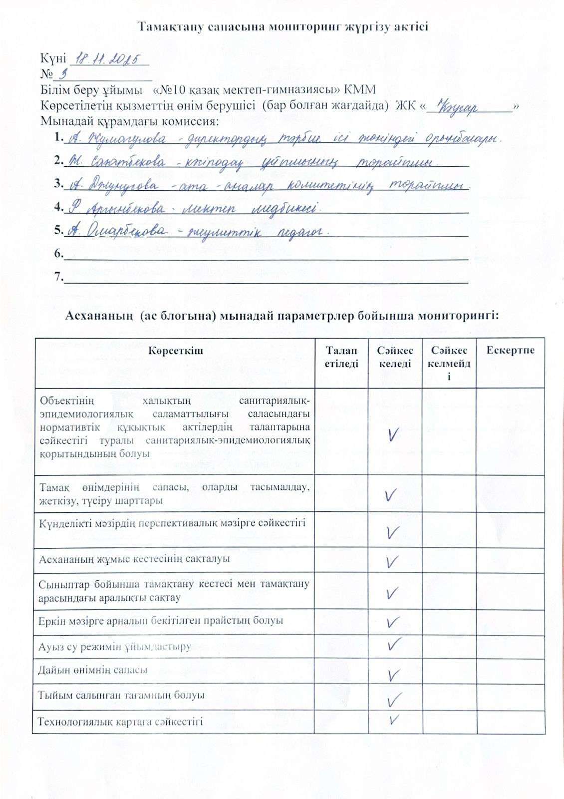 «№10 қазақ мектеп-гимназиясы» КММ Тамақтану сапасына мониторинг жүргізу актісі