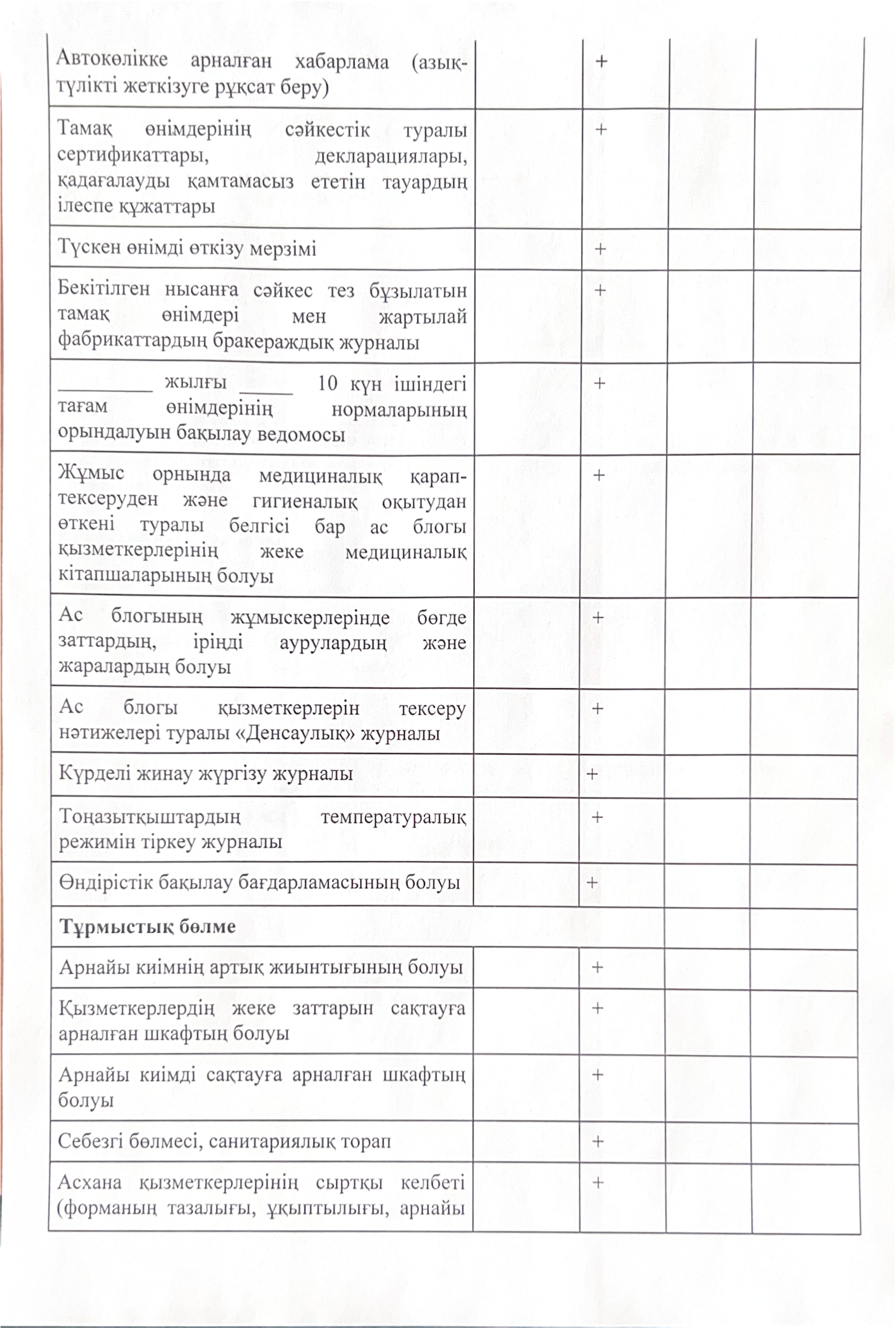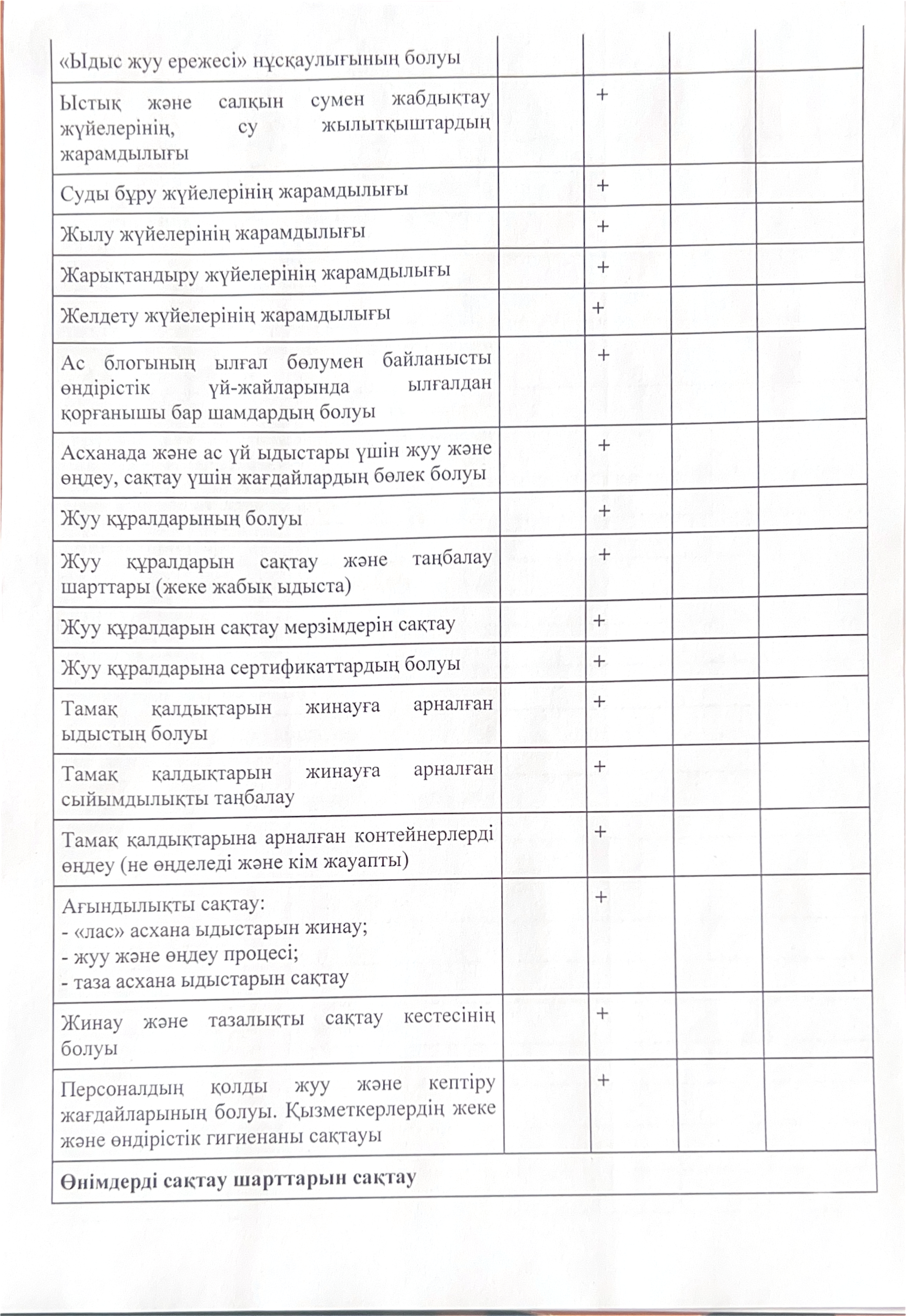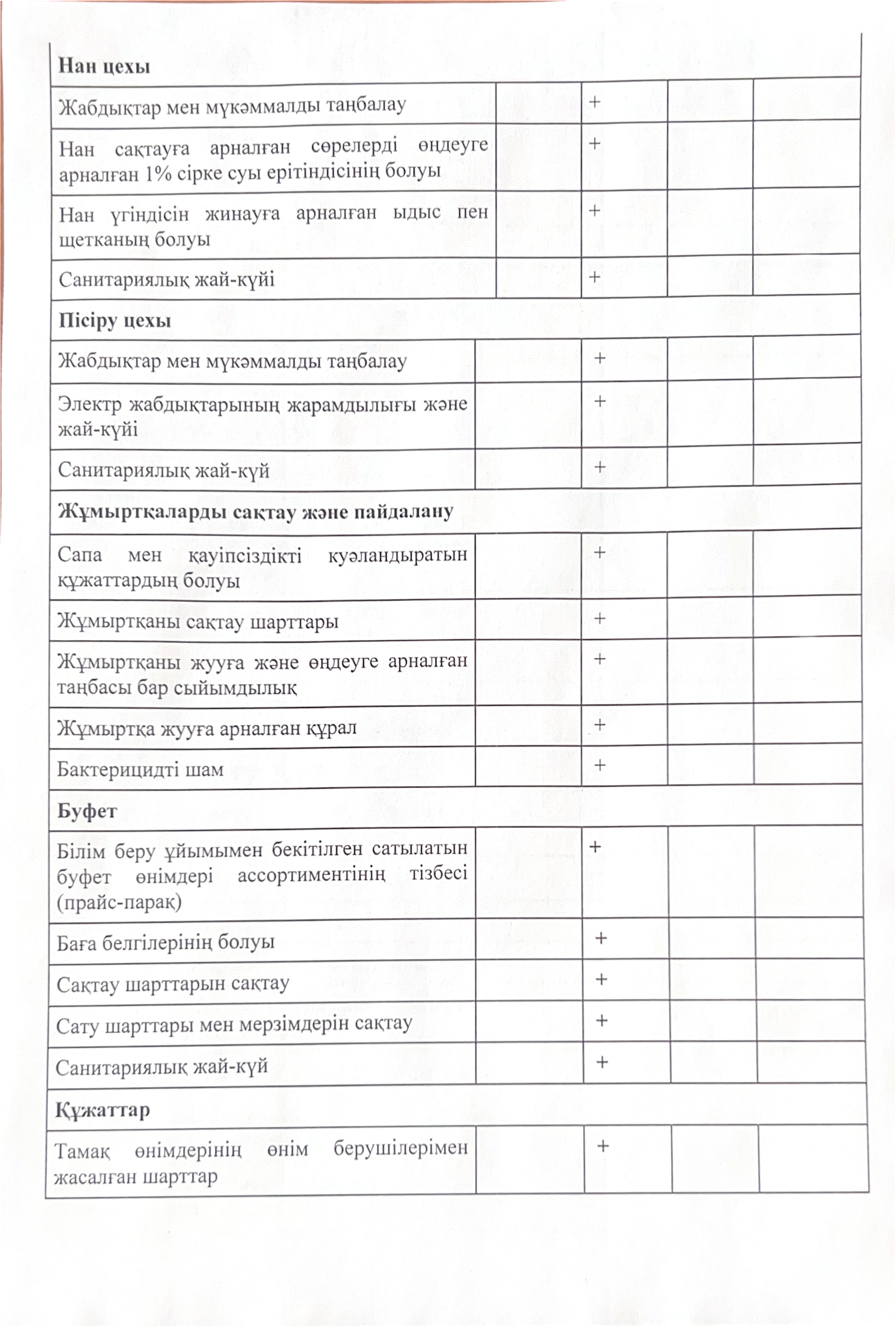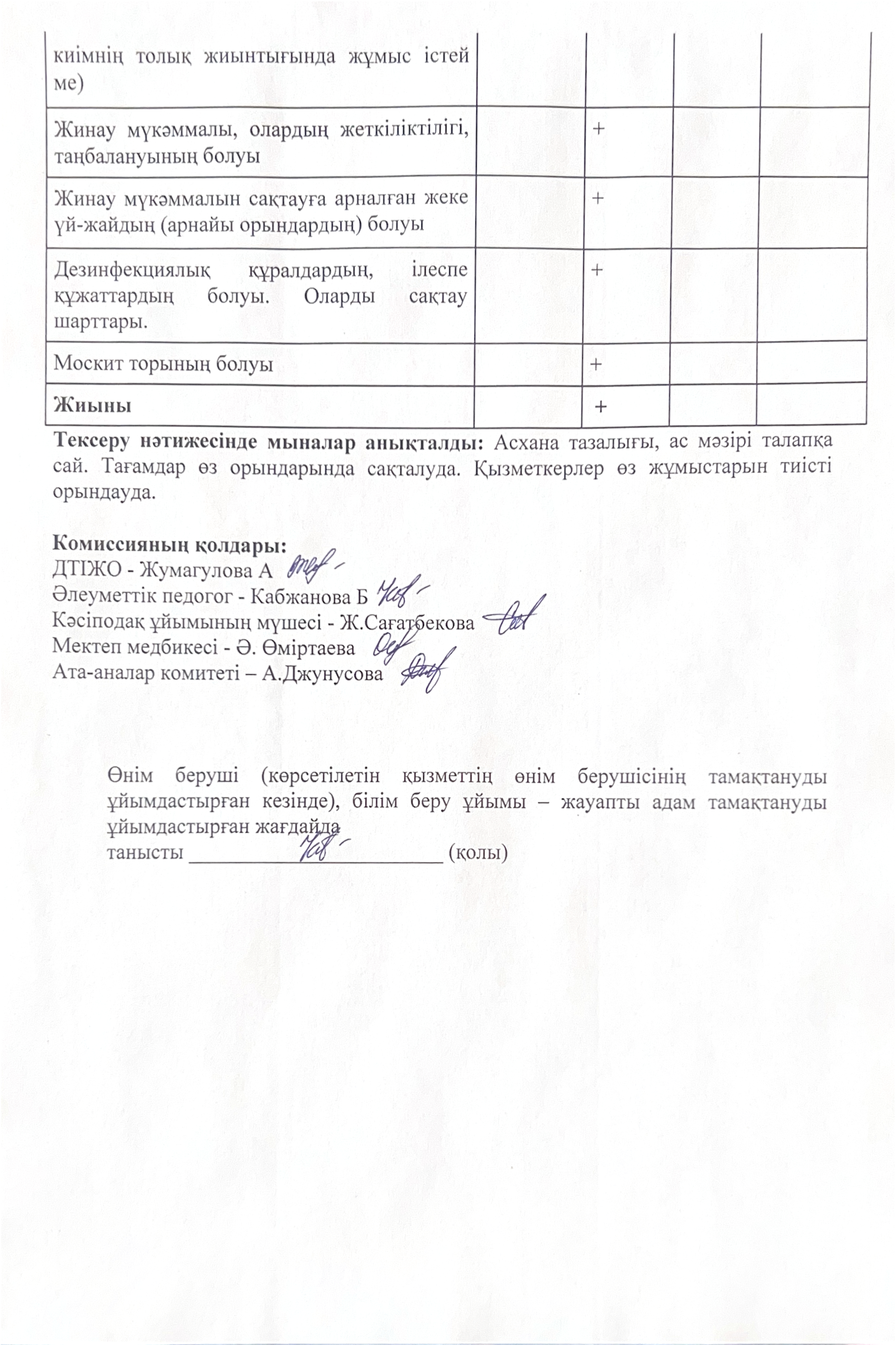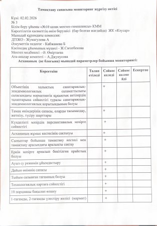 «№10 қазақ мектеп-гимназиясы» КММ Тамақтану сапасына мониторинг жүргізу актісі